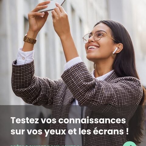 💻 QUIZ : TESTEZ VOS CONNAISSANCES SUR VOS YEUX ET LES ÉCRANS Entre le télétravail, les séries, les réseaux sociaux et les jeux, vos yeux passent des heures devant les écrans… Mais avez-vous les bons réflexes pour les protéger au quotidien ? 💬 Partagez votre score en commentaire ! Besoin d’un conseil personnalisé ou d’un contrôle visuel ? Rendez-vous en magasin, nous sommes là pour prendre soin de vos yeux ! ———————- Réponses : Question 1 : ✅ Réponse C : Toutes les 20 minutes ➡ La règle 20-20-20 : toutes les 20 minutes, regarder à 20 pieds (~6 m) pendant 20 secondes Question 2 : ✅ Réponse B : La lumière bleue ➡ La lumière bleue peut provoquer de la fatigue oculaire et perturber votre sommeil, nos solutions anti-lumière bleue permettent de limiter ces effets. Question 3 : ✅ Réponse C : Les yeux doivent regarder légèrement vers le bas ➡ Environ 15 à 20 degrés en dessous de l’horizontale, ce qui réduit la fatigue oculaire et limite la sécheresse des yeux Question 4 : ✅ Réponse A : Maximum 1 heure, moins c’est mieux ➡ Il est préférable de privilégier l’activité physique, ou la lecture et les histoires partagées avec un adulte quand l’enfant est calme.